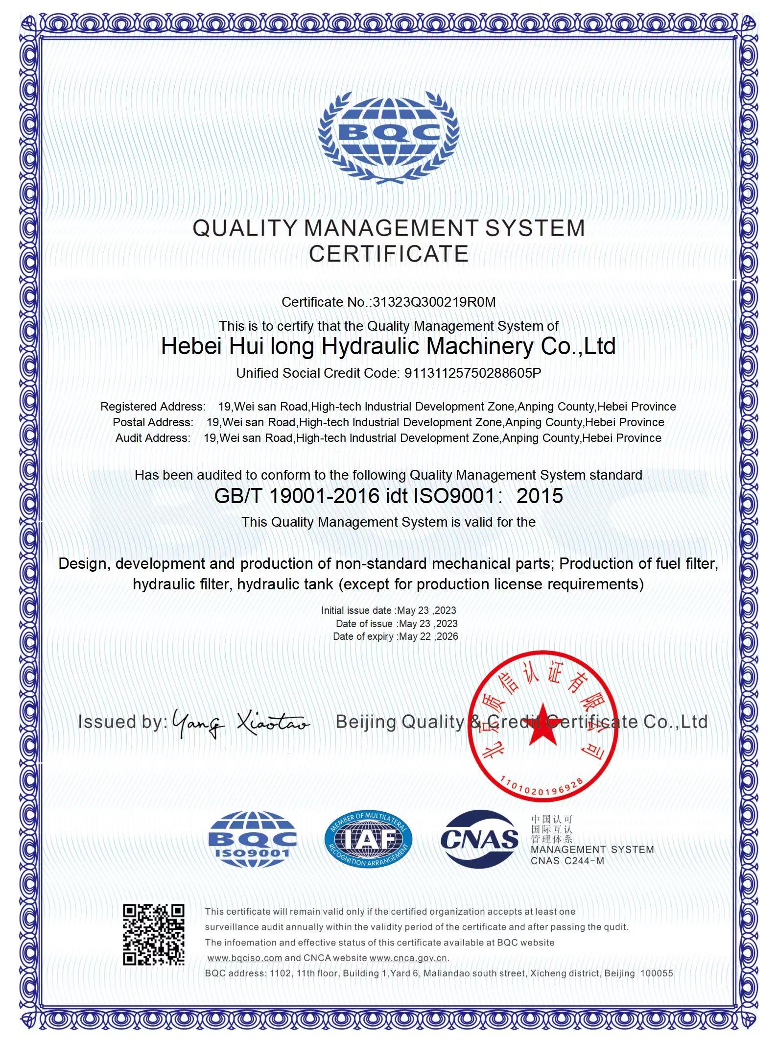 河北惠隆液壓機械有限公司主要生產回油過濾器,吸油過濾器,液壓過濾器,空氣過濾器等過濾產品我們一直致力于滿足市場的需求,為客戶的機械清潔運行提供優(yōu)良的產品。本公司設備精良,工藝精湛,檢驗檢測設備完善。產品全面按照ISO9001:2015質量管理體系生產,對采料,生產, 銷售實施全程質量控制,使產品質量各項性能指標均優(yōu)于國家標準企業每年均投入大量的資金,引進精湛的流水線和改進各種生產加工設備。